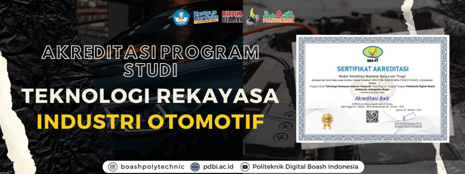 Berdasarkan Surat Keputusan Direktur Dewan Eksekutif BAN-PT No.6495/SK/BAN-PT/Ak/STr/X/2024. Program studi Teknologi Rekayasa Industri Otomotif telah mendapat predikat akreditasi “BAIK”, hal ini menandakan bahwa program Studi ini siap dalam segala aspek untuk menciptakan lulusan yang akan terjun ke dunia kerja.