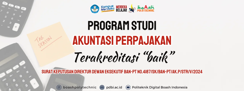 Berdasarkan Surat Keputusan Direktur Dewan Eksekutif BAN-PT No.4187/SK/BAN-PT/Ak.P/STr/V/2024. Program studi Akuntansi Perpajakan telah mendapat predikat akreditasi “BAIK”, hal ini menandakan bahwa program Studi ini siap dalam segala aspek untuk menciptakan lulusan yang akan terjun ke dunia kerja.