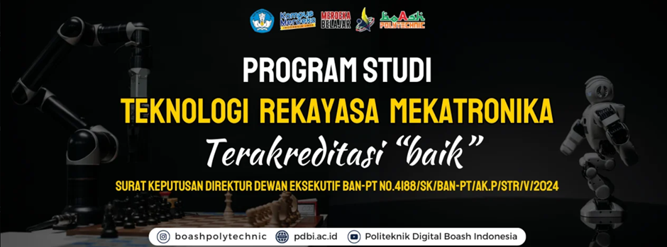 Berdasarkan Surat Keputusan Direktur Dewan Eksekutif BAN-PT No.4188/SK/BAN-PT/Ak.P/STr/V/2024. Program studi Teknologi Rekayasa Mekatronika telah mendapat predikat akreditasi “BAIK”, hal ini menandakan bahwa program Studi ini siap dalam segala aspek untuk menciptakan lulusan yang akan terjun ke dunia kerja.